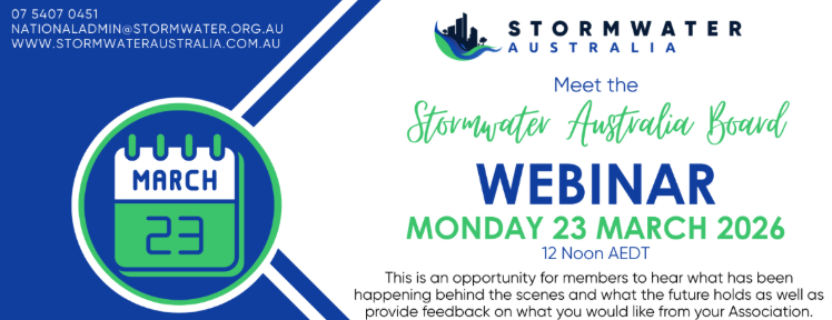 Come along and meet the Stormwater Australia Board and hear what is planning for the coming year. This is an opportunity for members to hear what has been happening behind the scenes and what the future holds as well as provide feedback on what you would like from your Association. EVENT INFORMATION + REGISTRATION HERE |