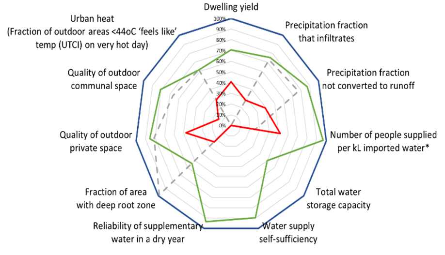 CRCWSC's tools quantify the benefits of water sensitive development. The Knutsford case study demonstrates water sensitive approach outperforming business-as-usual in water management, urban heat reduction, and economic viability.