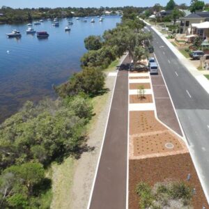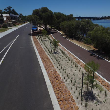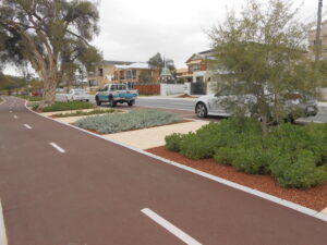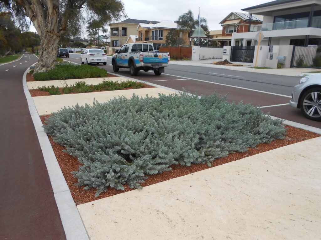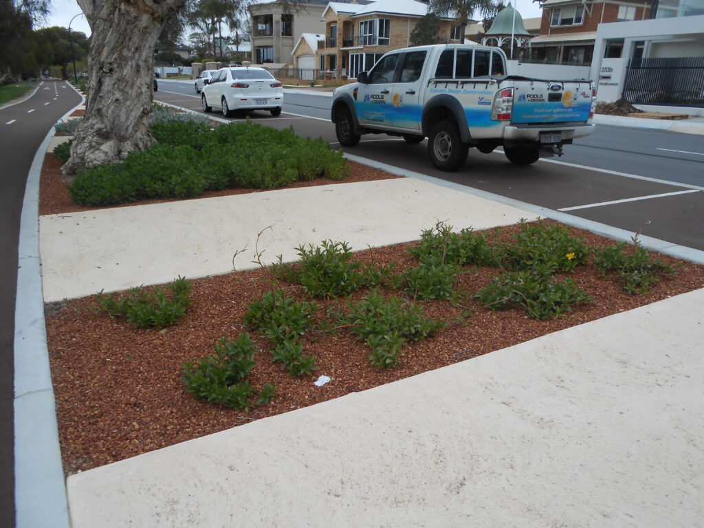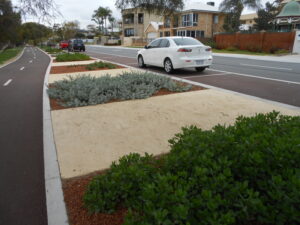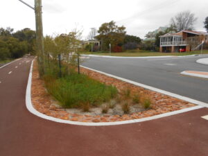 The Esplanade road reserve in Brentwood underwent a biofilter-based stormwater management project by the City of Melville, enhancing water quality and streetscape while reducing maintenance costs.