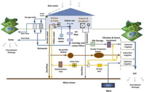 WSUD Solution: Biofilter and raingardens, Blackwater reuse (wastewater reuse), Dry/Ephemeral detention area, Green roof/walls, Greywater reuse, Litter and sediment traps and hydrocarbon management, Managed aquifer recharge, Non structural strategies - maintenance, education and participation programs, Rainwater storage, Stormwater harvesting and reuse